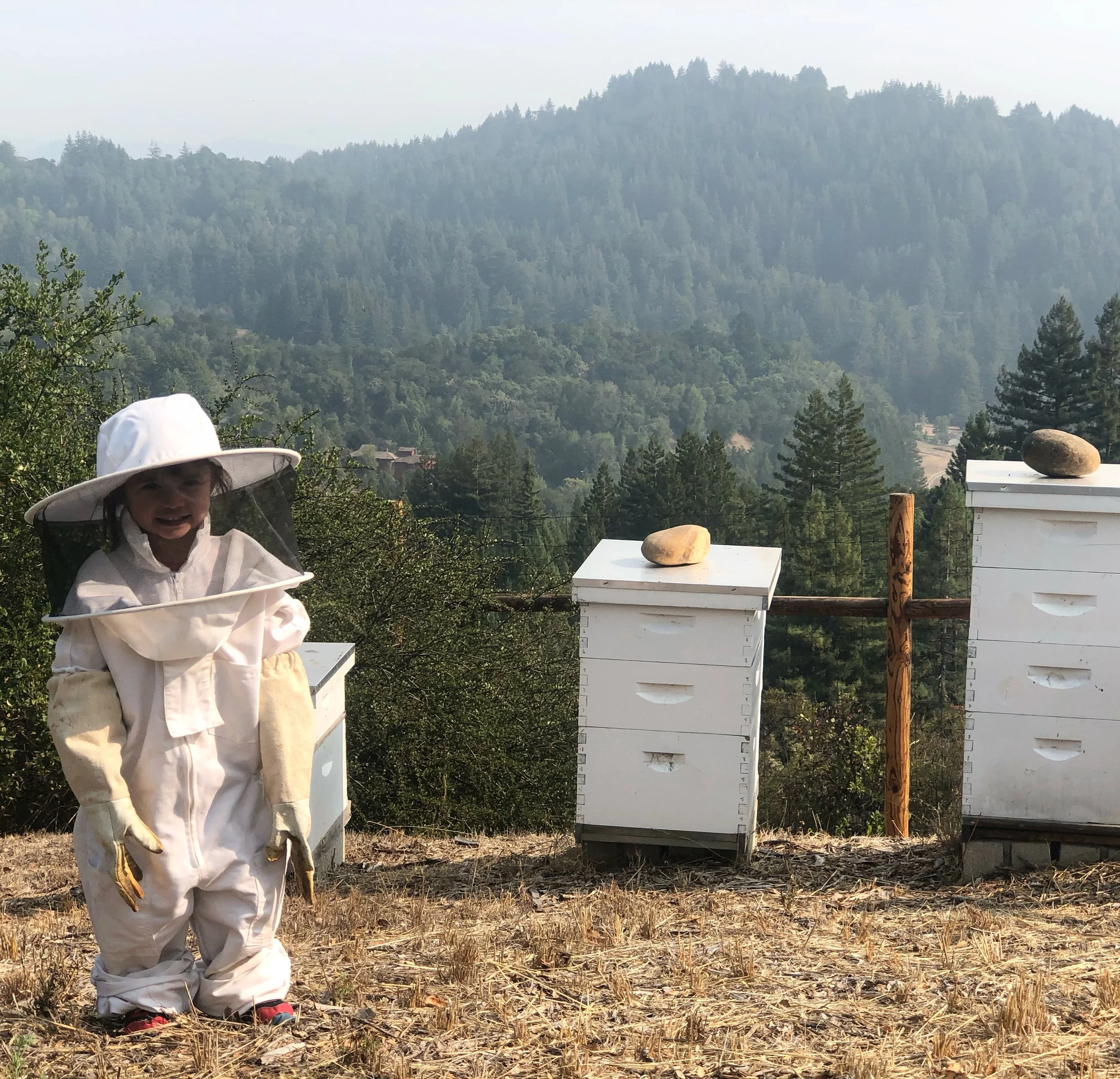 A brave 4.5 year old beekeeper